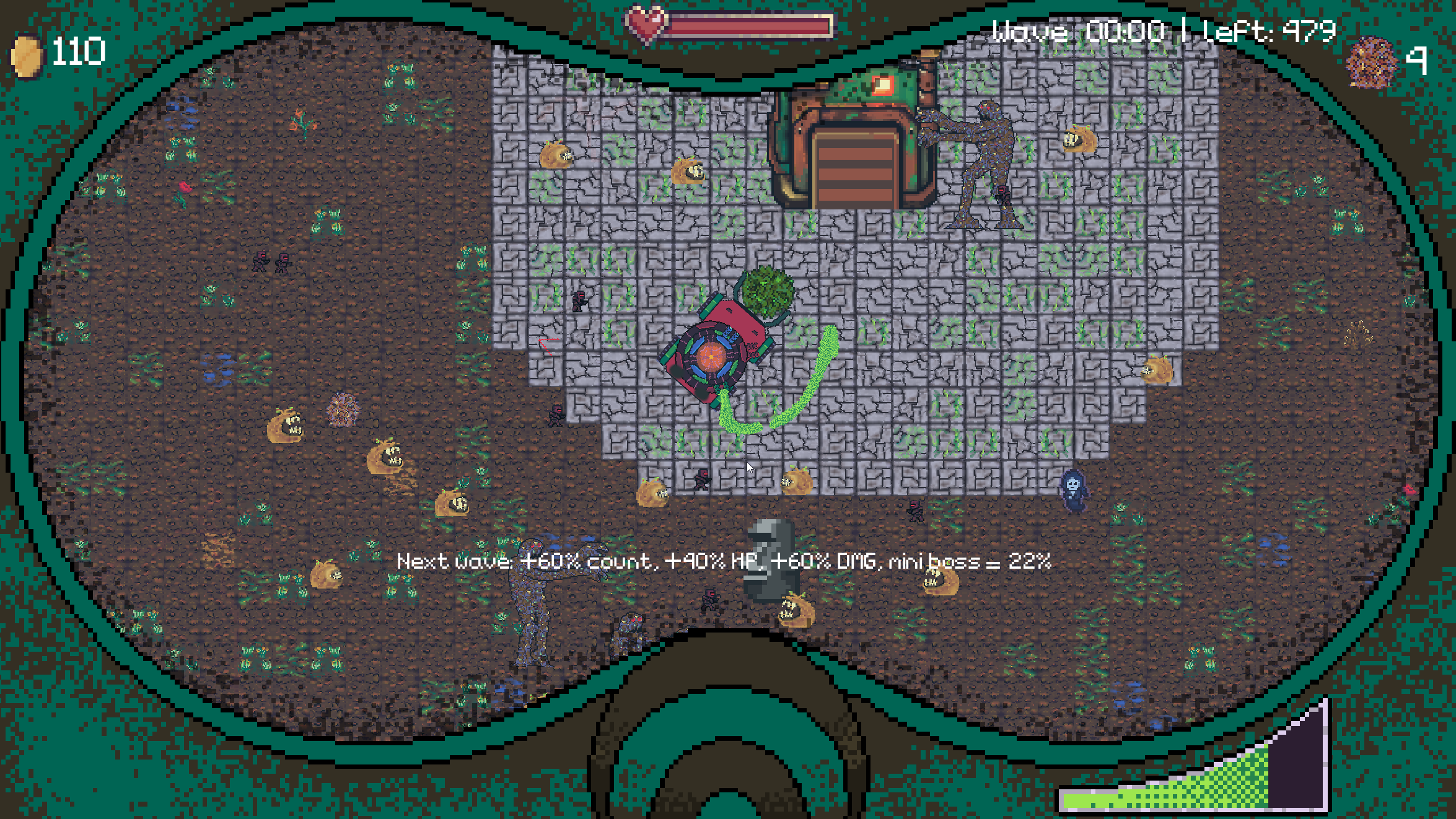 You fight endless waves of enemies — gathering trash, upgrading turrets, and hiding behind your mask. Search the map for trash and bring it to the incinerator to recycle it for upgrades.